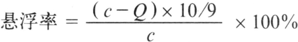 式中 c为测定悬浮率时称取样品中有效成分的质量(克);a为样品中有效成分含量(%);b为测定悬浮率时称取样品的质量(克);Q为留下的悬浮液及沉淀物中有效成分的质量(克);10/9为校正系数,因为留下的1/10悬浮液及沉淀物,其中沉淀物所占容积较小,主要是悬浮液,此悬浮液中的有效成分粒子仍处于悬浮状态,为此须乘以校正系数。