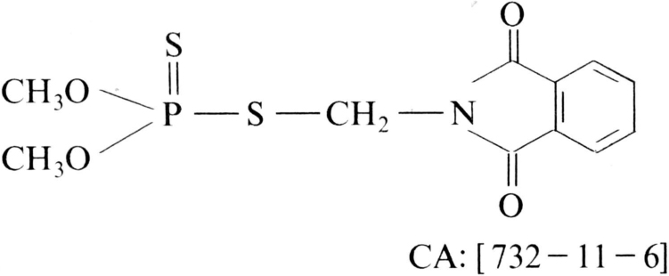 低毒广谱二硫代磷酸酯类杀虫杀螨剂。化学结构式: 亚胺硫磷 1966年美国施多福化学公司(Stauffer Chemical Co.)首先开发。性能纯品为无色结晶固体,熔点72~72.7℃在中性或酸性介质中较稳定,在碱性介质中易分解。难溶于水,25℃时水中溶解度为25毫克/升,可溶于一般有机溶剂。对高等动物毒性较低,大白鼠急性口服LD50299毫克/千克(雌)