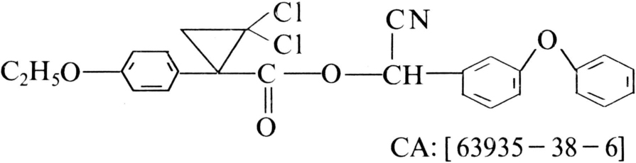 对鱼类等水生生物低毒可用于水田的合成拟除虫菊酯杀虫剂。商品名和其他名称有赛乐收、杀螟菊酯、稻虫菊酯、Cyclosal、Phencyclate等。有四个光学异构体。化学结构式: 乙氰菊酯 1977年由澳大利亚联邦科学与工业研究组织(CSIRO)的霍兰(G.Holan)等首先研制成功,由日本化药公司(Nippon Kayaku Co.,Ltd.)等开发投入生产。