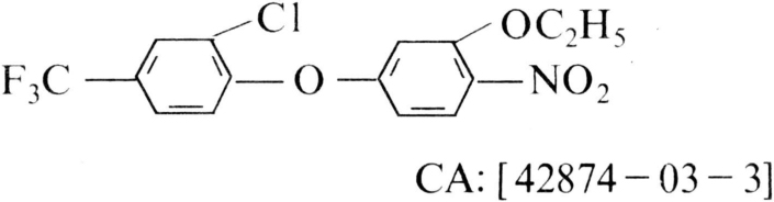 芽前、芽后使用的选择性触杀型二苯醚类除草剂。商品名果尔、Goal。化学结构式: