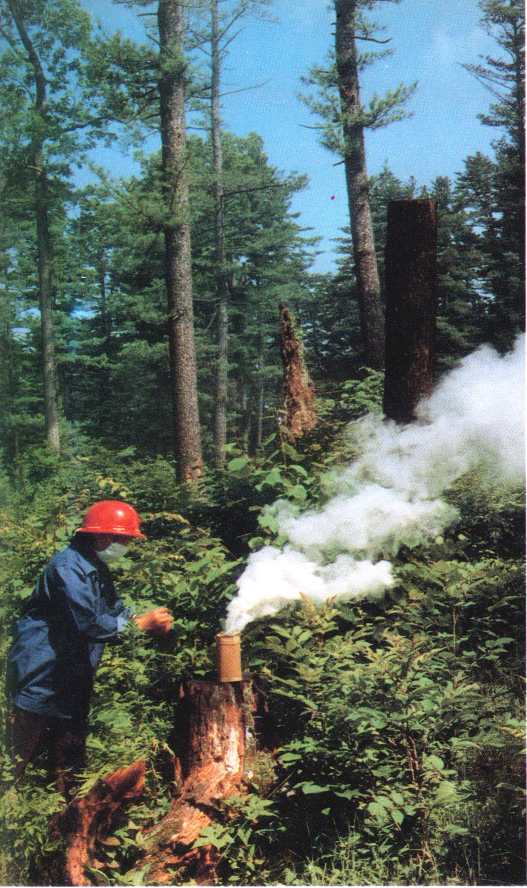 ▲91 燃放烟剂农药防治林业害虫(吉林露水河林场,1983.7)