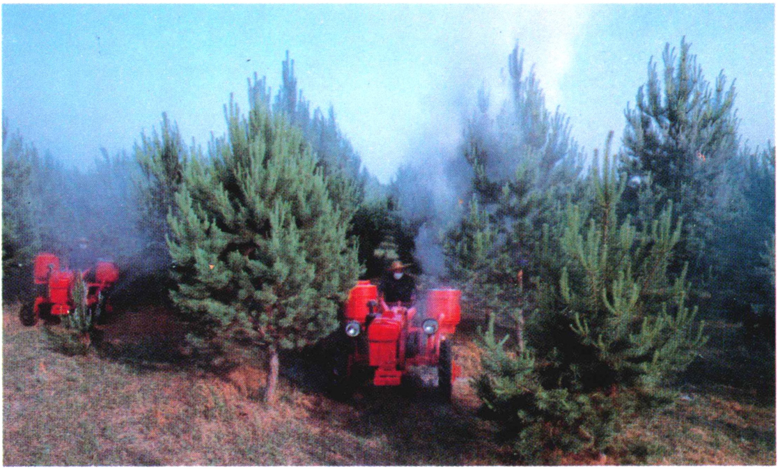 ▲94 林地机动喷药(辽宁昌图付家林场,1977.5)