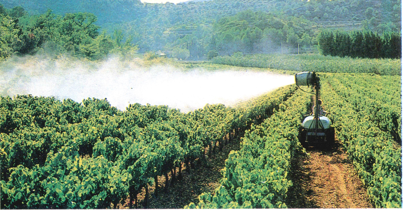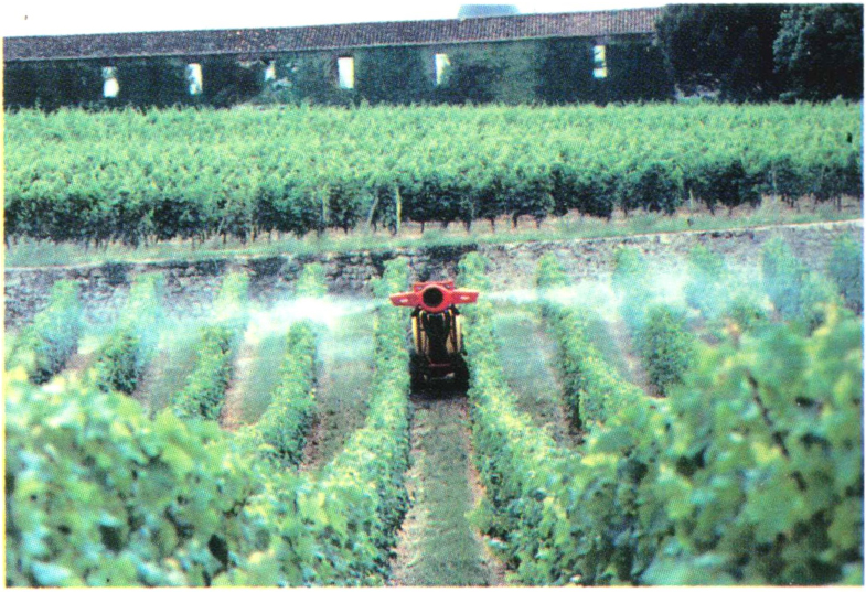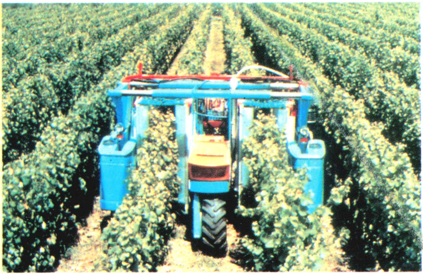▲101 果园风送式喷雾机在葡萄园中作业