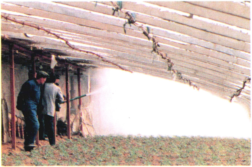 ▲97 温室大棚中滑动式喷雾机苗床消毒