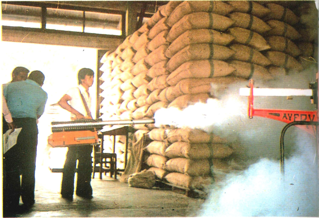 ▲100 热烟雾机在仓库中作业