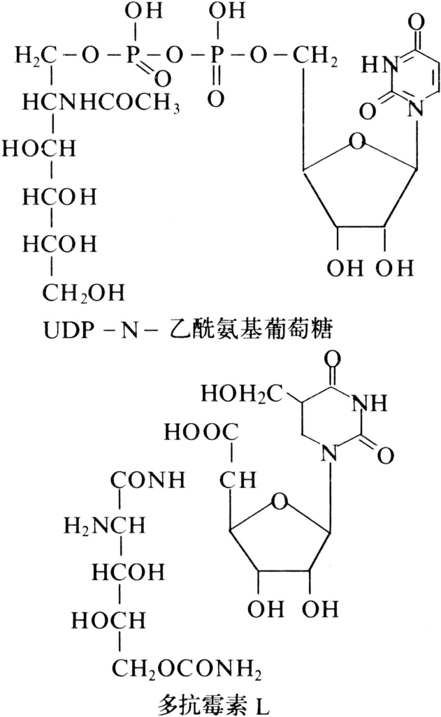 图1 多抗霉素L和UDP-N-乙酰氨基葡萄糖结构