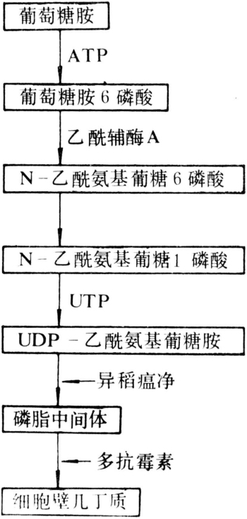 图2 真菌细胞壁合成路线和多抗霉素及异稻瘟净作用点