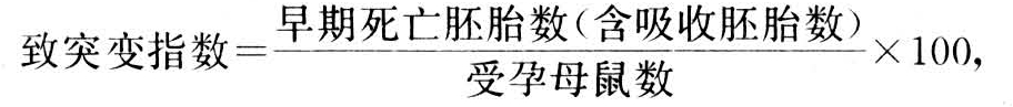 通过观察胚胎发育状况及死亡率来检验致突变物引起的哺乳动物雄性生殖细胞的突变。
