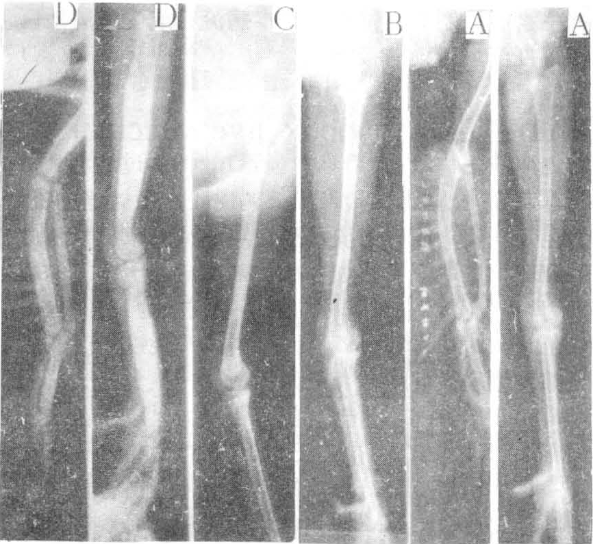 不同类型鸡骨质石化病四肢侧位X线照片