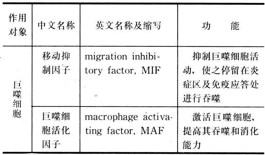 淋巴因子有如下特点:①产生量少而活性强,能使体内多种免疫细胞活化,通常局限在抗原刺激的部位发挥作用;②大多数为蛋白质,分子量为2.5万~8万;③具非特异性,如趋化因子、移动抑制因子、活化因子等,或具特异性,如武装因子、细胞毒因子等:④其活性常在淋巴细胞被激活后2~6小时出现,24~48小时达到高峰,并维持数日;⑤具有种属特异性。不同种属动物所具同一活性的淋巴因子,其化学组成往往有很大差别。例如小鼠和豚鼠的淋巴毒素分子量为4.3万,而人的淋巴因子则为8万;⑥由于其产量极微,难以完全纯化和进行结构的研究,故至今尚难确定其化学本质的种类和数量。根据世界卫生组织的建议,依作用对象不同而将其分为五大类(表)。