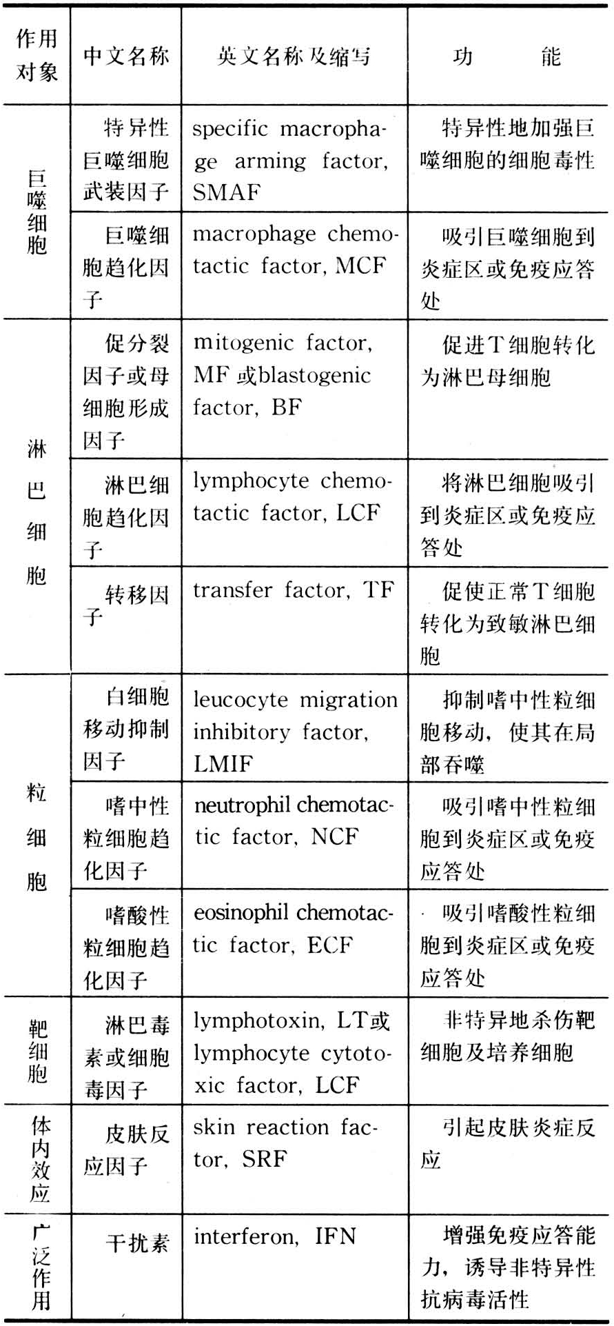 致敏淋巴细胞接触相应抗原刺激后产生的一组具有多种不同免疫活性的体液因子。主要由T细胞产生,亦可部分由B细胞产生。
