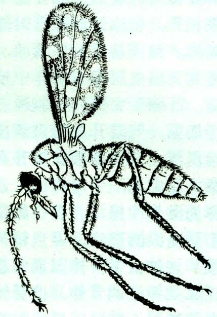 双翅目中的一类吸血昆虫。俗称小咬。属蠓科的重要的属有库蠓属(Culi-coides)、蠛蠓属(Lasiohelea)、细蠓属(Leptoconopes)等。似蚊而小,长1~3毫米,黑褐色,触角细长,胸腹多毛,翅宽圆,多数有色斑,静息时二翅重叠于腹背,足细长(图)。发育为完全变态,成蠓在炎热的季节出现,卵产于水草萍藻,潮湿泥土或粪肥之中,幼虫生活于其中,几个月后化为蛹。蛹期几天,越冬为幼虫或蛹期,成蠓寿命约一个月,飞翔力不强,多在无风的晴天活动,群舞婚飞,追逐人畜,晨昏尤甚。雄蠓不吸血,雌蠓吸血,栖息于潮湿阴暗的所在,较少入室,当蠓大量出现时,骚扰畜禽,不能安息,叮咬处红肿痛痒,水肿发炎以至溃疡,影响健康及生产性能,有的还能传播一些病原体,如牛马的蟠尾丝虫幼虫。尚无有效的防制措施。