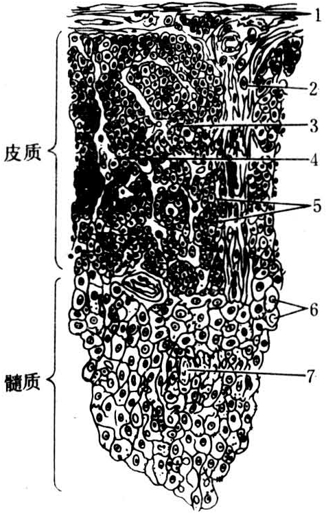 图1 胸腺小叶一角的模式