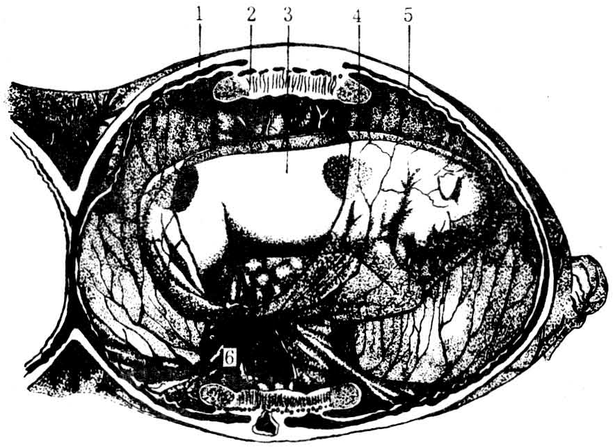 在胚胎发育过程中,包裹胚体起保护、营养、呼吸、排泄作用的袋状膜结构。爬行类、鸟类和哺乳类等是有羊膜动物胎膜,包括羊膜、绒毛膜、卵黄囊和尿囊。在胚胎发育成胚内和胚外两部分时,内、中、外三胚层也相应分布到各处。胚胎周围的外胚层和中胚层向上起褶,把胚体包起形成羊膜,禽类和家畜都是这样形成的。羊膜形成以后,胚体在羊膜分泌的水状液体中生存。羊膜褶形成后留在外面的外胚层即滋养层连同其内面的中胚层与壳膜(鸟类、爬行类)或子宫内膜(家畜)相贴的部分形成绒毛膜,以吸取营养,进行呼吸和排泄。内胚层及其外面的中胚层与卵黄相贴(鸟类)或形成原肠壁(哺乳类),共同包住卵黄或原肠腔(胚外部分)形成了卵黄囊。此时哺乳类的胚外原肠腔更名为卵黄囊,胚体内的部分仍维持原肠之名,并分为前肠、中肠、后肠三段。中肠与卵黄囊相通,此处最终形成脐带。在后肠腹侧的内胚层,连同其外面的中胚层下突成囊状而成为尿囊,尿囊延伸缩细部分也包在脐带中,脐带是羊膜在胚胎腹部包住通往卵黄囊、尿囊的缩细部分,最初较短,随着胎儿的活动增加而延长。禽类的卵黄囊中包有卵黄,壁上有血管发生并通入胚体,故为重要的获取营养的器官。禽类的尿囊扩展后经绒毛膜贴于卵的壳膜上,以进行气体交换和向尿囊内排泄废物。家畜的卵黄囊和尿囊,到后期都变小退化,在尿囊与绒毛膜相贴处,形成了尿囊绒膜,外面与子宫接触处形成胎盘,以便与母体进行物质交换(图)。