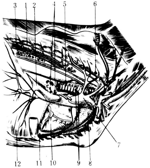 牛胸腔右侧观(肺已切除)