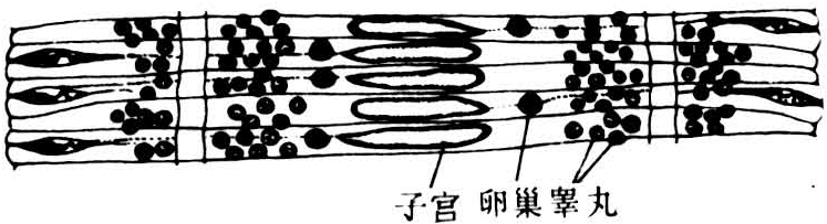 中点无卵黄腺绦虫成虫节(M.O.Monnig)
