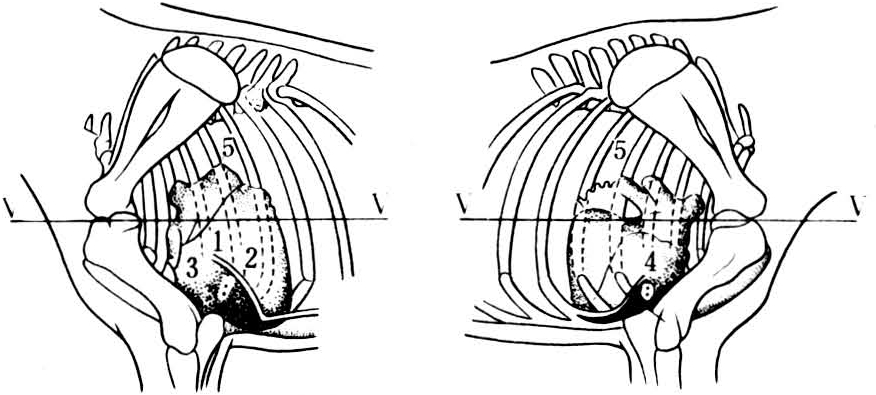 图2 牛的各瓣膜口心音最佳听取点