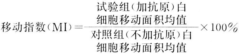 通过检测移动抑制因子借以反映特异性细胞免疫功能的体外试验。又称游走抑制试验。致敏淋巴细胞在体外培养时,受相应抗原刺激后,能产生多种淋巴因子,其中移动抑制因子(MIF)较易被检测,因此常用以作为特异性细胞免疫功能的指标。MIF可分巨噬细胞移动抑制因子(MMIF)和白细胞移动抑制因子(LMIF)两种,试验中可选择巨噬细胞或白细胞(主要指嗜中性粒细胞)作为指示细胞加以检测。前者需用豚鼠腹腔巨噬细胞,操作繁杂;而白细胞易于获得,因此一般多用白细胞移动抑制试验。
