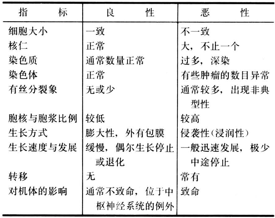 区别肿瘤性质的主要指标见表1。其中最重要的是肿瘤细胞的侵袭力(invasiveness)和转移性(metastasis)。