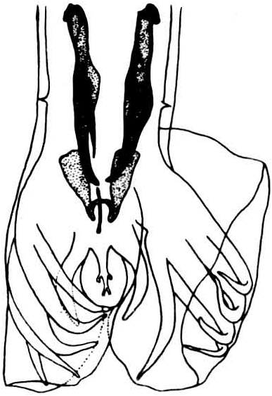 红色猪圆线虫寄生于猪胃粘膜内引起的寄生虫病。红色猪圆线虫(Hyostrongylus rubidus Hassall et Stiles,1892)属圆线目、毛圆科、猪圆属。虫体纤细,带红色。雄虫体长4~7毫米,交合伞侧叶发达,背叶短小(图)。雌虫长5~10毫米,阴门在肛门稍前。卵大小为(65~83)×(33~42)微米,长椭圆形,卵壳薄,从猪体内排出时含8~10个胚细胞。发育史为直接型。虫卵随猪粪便排至外界,在适宜环境中孵化,经两次蜕化发育为感染幼虫,随饲料或饮水经口感染。幼虫进入胃腔后,侵入腺窝,经过一定时间的发育后,返回胃腔发育为成虫。红色猪圆线虫侵入胃粘膜吸血,对仔猪危害较严重。育肥猪、成年猪常不显症状。严重感染或并发胃炎时,患猪表现精神萎靡,贫血,发育不良,排混有血液的黑便。剖检见胃底部有小点出血和卡他性炎症;严重者粘膜增厚,形成扁平突起或圆形结节,其上覆有黄色伪膜。虫体附着在结节上或结节粘膜内,进一步发展即形成溃疡。因缺少特异性症状,主要应以剖检病尸时发现虫体与相应病变和粪便检查时发现虫卵作为诊断的根据。虫卵形态与食道口线虫卵相似,较难鉴别,常需要培养为感染幼虫后进行鉴别。治疗可用二硫化碳、噻苯唑或左咪唑驱虫。猪舍应保持清洁、干燥,清除粪便要及时。保持饲料和饮水清洁,严防粪便污染。(殷佩云)