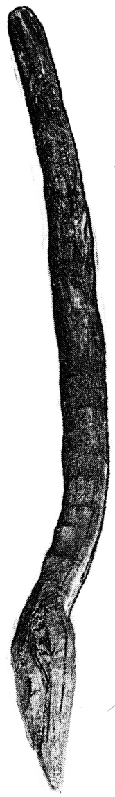 耒的下端是尖锥式,耜的下端为平叶式。耒是从采集经济时期挖掘植物的尖木棍发展而来的,早期的耒就是一根尖木棍(见图1),以后在下端安一横木便于脚踏,入土容易。再后单尖演变为双尖,称为双齿耒。单尖木耒的刃部发展成为扁平的板状刃,就成为木耜。它的挖土功效比耒大,但制作也比耒复杂,需要用石斧将整段木材劈削成圆棍形的柄和板状的刃,即所谓神农“破木为耜”、“斫木为耜”。
