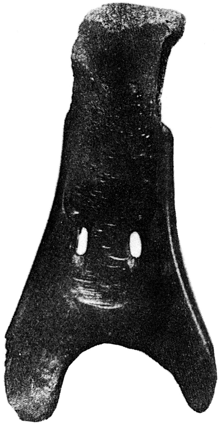 最早的挖土工具。耒耜是两种农具。耒的下端是尖锥式,耜的下端为平叶式。耒是从采集经济时期挖掘植物的尖木棍发展而来的,早期的耒就是一根尖木棍(见图1),以后在下端安一横木便于脚踏,入土容易。再后单尖演变为双尖,称为双齿耒。单尖木耒的刃部发展成为扁平的板状刃,就成为木耜。它的挖土功效比耒大,但制作也比耒复杂,需要用石斧将整段木材劈削成圆棍形的柄和板状的刃,即所谓神农“破木为耜”、“斫木为耜”。早期的耒耜都是木质的,因此不易保存下来。但在河南陕县庙底沟和陕西临潼姜寨等新石器时代遗址中都发现过使用双齿耒挖土后留下的痕迹,在浙江余姚河姆渡新石器时代遗址出土过木耜(见图2)。由于木耜的刃部容易磨损,后来就改用动物的肩胛骨或石头制作,耜刃绑在木柄上成为复合工具,就成为骨耜(见图3)和石耜(见图4)。它们都比木耜更坚固耐磨,从而提高了挖土的功效。目前在北方较早的新石器时代遗址,如河北武安的磁山遗址和河南新郑裴李岗遗址以及辽宁、内蒙古等地的遗址都出土很多石耜,其时代最早可达8000年前。由此推测,木质的耒耜的起始年代当更为久远。目前发现骨耜最多的地方是浙江余姚河姆渡遗址和桐乡罗家角遗址,距今7000年左右。骨耜是用偶蹄类哺乳动物肩胛骨制成。肩部挖一方孔,可以穿过绳子绑住木柄。骨耜的中部磨有一道凹槽以容木柄,在槽的两边又开了两个孔,穿绳正好绑住木柄末端,使木柄不易脱落,其制作方法已相当进步。这种骨耜在南方水田中使用,功效是很高的。