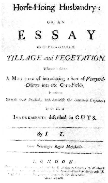 英国近代倡导以马力中耕为特点的农学专著。作者塔尔(Jethro Tull,1674—1740),受过高等教育,获得从事律师的资格,但终生未肯就职。1699年后在牛津郡豪贝里定居于其父经管的农场从事农业,其间曾创制条播机,后来移居到巴克夏郡边缘的普罗斯佩拉斯农场直至逝世。曾两度到欧洲大陆旅游疗养,眼界有所扩展。该书1733年在伦敦出版,后来曾多次重印再版(见图),书的副题是《试论耕作与植物生育的原理》(An Eassay on the Principles of Tillage and Vegetation)。全书的章节不同版次有所调整,1743年版共分20章,其内容依次为:植物形态、营养及栽培(1~4章),施肥、整地、除草(5~7章),犁、犁耕及条播等(17~20章)。全书的内容是倡导以马力条播中耕为特点的新式农法,即通称的塔尔农法(Tull System Husbandary)。塔尔认为植物的营养物质是由土壤微粒子构成的,因而及时碎土可不施肥而仍能维持并增进地力,他提倡用马来中耕就是基于这个原因。针对当时的撒播陋习,他主张推行条播,为此他创制了条播机。为提高种子萌发率并减少播种过程中的损失,播种机上装置了特制的种子箱。为此改变撒播平种为起垄条播,这样作物株数虽有所减少,但每棵作物能有较多的生长空间,净产量有可能增加。为了用碎土代替施肥而要求经常锄地,为提高锄地效率提出应当用马作役畜,创制畜力中耕犁(hoeplough)。这一中耕碎土除去杂草的设想,有益于作物田间生长,对于改变中世纪以来的粗放农业,推动当时的农业生产起到了积极作用。