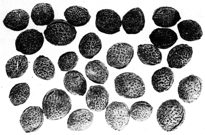 梅〔Prunus mume(Sieb.)Sieb.et Zucc.〕为原产中国的著名观赏花木与经济果树。梅实在历史的早期是重要的调味品,《尚书》已谈到古人将梅果用于烹调食品。梅在古代由采果为主发展为以观花为主。《西京杂记》记载汉武帝初修上林苑时,群臣献上的花梅品种记有朱梅、紫叶梅、紫华梅、同心梅、丽枝梅、燕梅和猴梅7个。 湖北江陵望山出土战国梅核 《齐民要术》提到春秋两季适于种植梅树。