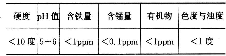 和面要用软水,因为硬度高的水有较多的金属离子,如钙、铁、镁、锰等,它们与蛋白质结合能影响面的延展性,并使方便面产生褐变,与淀粉结合还能影响其膨胀、湿润和糊化,而且金属离子是油脂氧化的催化剂。生产方便面用水质量要求,见表1。