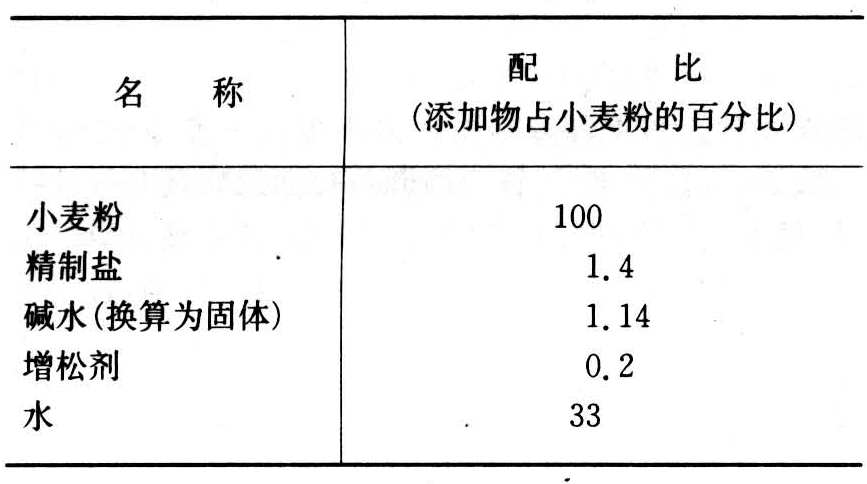 表2 油炸方便面的原料配比