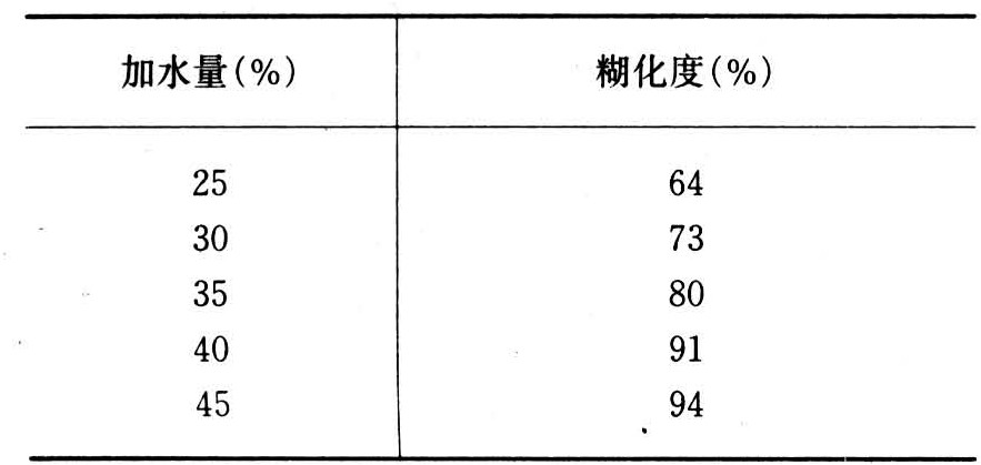 表3 加水量与糊化程度的关系