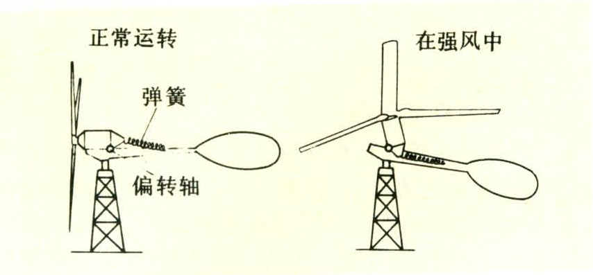 调速装置是为保持风轮转速恒定的装置。这类装置的结构有多种多样。一类是固定叶片的调速器,如采用绞接尾舵和空气制动器等。另一类为可变桨距调速器,如利用飞球等配重和弹簧改变翼片的桨距调整风轮转速。