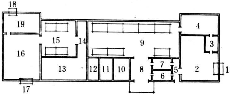 孵化厅的设计主要包括种蛋接收室、种蛋熏蒸室、种蛋存放室(蛋库)、孵化室、出雏室、雏鸡鉴别室、雏鸡免疫、分级室及雏鸡发放室等部分。孵化厅的平面布置要满足如下工艺流程:种蛋接收→熏蒸消毒→蛋库→孵化→出雏→鉴别、分级→免疫→发运。其流程不逆行,不交叉。种蛋的接收和雏鸡的发运要有独立的入口和出口。孵化厅平面可设计成“工”形、“”形、“+”形和“凵”形(见图)。孵化室、出雏室、雏鸡鉴别、分级室及蛋库的净高一般为3.0~4.0米,有吊顶。熏蒸室净高一般为2.2~2.4米。中国的孵化厅多采用砖混结构。其主要建筑部位材料的做法要求见表2,各室的温、湿度标准见表3。孵化、出雏及熏蒸室均设机械通风装置,大型孵化厅宜设空调系统,蛋库宜用冷风机。