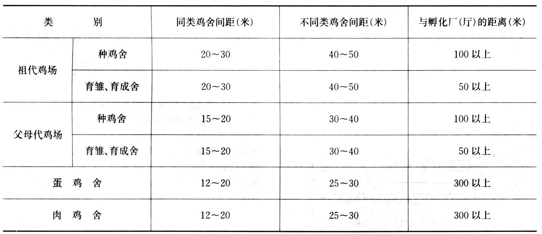 表4 鸡舍之间及鸡舍与孵化厅的间距