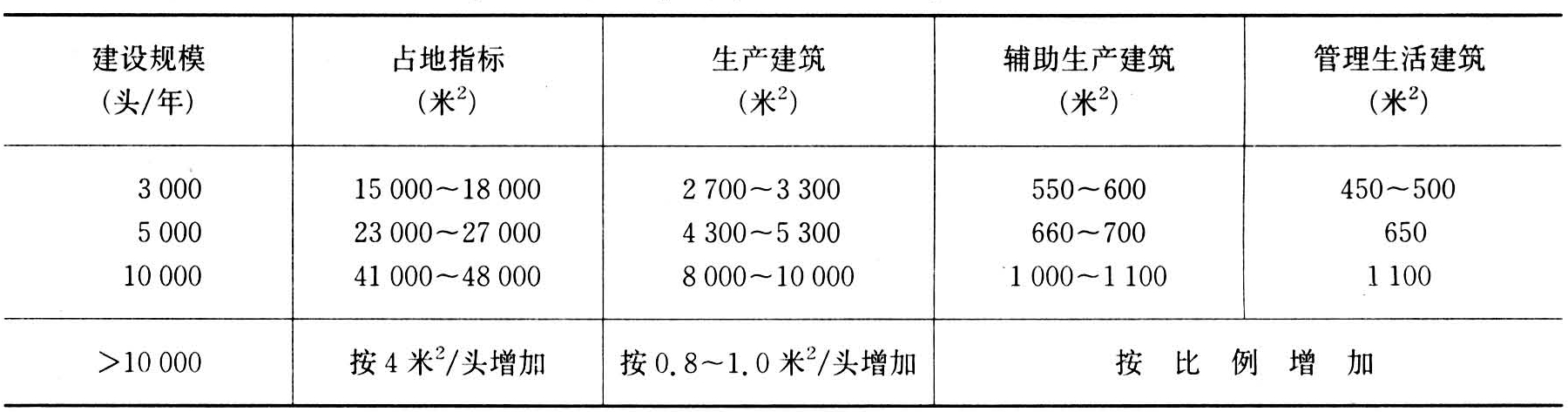 表2 工厂化养猪场占地面积及建筑面积指标