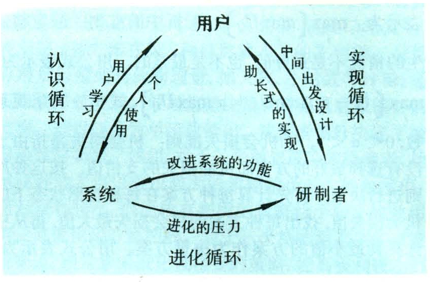 应用交互设计原理研制决策支持系统,其交互设计过程如图所示。认识循环表示用户和系统的相互作用,实现循环表示研制者与用户关系,进化循环反映研制者实现系统的方法和途径。