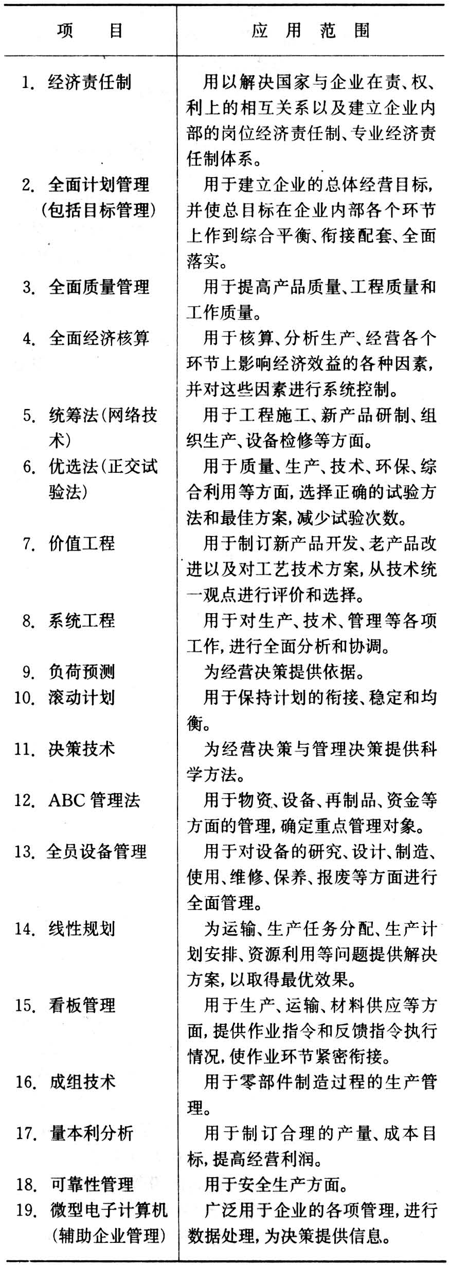 19种现代管理方法的应用范围