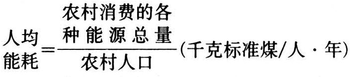 评价农村用能品位、数量、效率、效益的单项指标和综合指标。按不同的消费部门和不同的能源种类而有多项指标,从各方面反映农村用能的水平。目前中国农村能源的总消费水平用人均能耗表示,各种能源的消费量折算成统一的计量单位,然后按标准煤计: 农村能源消费水平 这一综合指标包括了用于生产、生活的各种商品能源和生物质能源的消费水平。