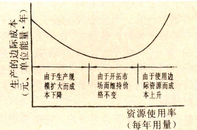 “可再生”表示这种能源资源在供应总量上没有限制,即它被消耗后又可重新再生,从而可以无限期地供应下去。然而,从时间上讲,可再生资源并不意味着瞬时的资源是无限多的。某些可再生资源具有许多与不可再生资源相似的特性,例如,森林资源,如果砍伐量超过林木的再生速率,同样会造成资源贫化。又如水力资源只能开发一定数量的水电,当所有容量都已建造,则水力资源也就开采殆尽。但无论如何,只要在其再生速率范围内它们仍可以无限期地使用下去。这是可再生能源与不可再生能源资源的重要区别之点。另一特点是可再生能源资源量究竟可利用多少,取决于获得该种能源并将其转化为有用形式的技术水平。如果脱离开技术的可得性,很多情况下就无法评价可再生能源资源。对其研究和评价的着重点在于:①可再生能源资源量的定义。由于其能源形式的多样化,以及由这些资源中获取有用能的方法又各不相同,因而对可再生能源资源量的定义尚无统一的意见。中国在定义可再生能源资源量时,首先应将确定该种资源量的基本参数作为基本点,然后再将其引申到如何估计其中能利用的部分,如表2所示。②可再生能源资源的生产率。影响可再生能源资源生产率的制约因素主要有三方面:物理条件,不同的可再生能源资源各不相同,有的资源受物理条件影响,如生物质能资源的生产率就受其物理上的生长速率的影响。而太阳能在物理上原则上没有什么限制。二是技术条件,对每种可再生能源资源的生产率都有限制。分别研究每种资源开发的技术可能性,成本的经济性以及对环境与社会的影响,确定其可能的生产率是确定可供能源量的关键。三是市场条件,涉及到供应问题,有些情况下生产率受用户需求量的限制。③可再生能源生产经济问题。可再生能源生产经济问题与不可再生能源有相似之处,但有两点不同:一是可再生能源生产的边际成本是其转换技术及市场条件的函数,是按每年利用量计算,而不像不可再生能源是按累计生产量计算。同时,由于生产规模与市场开拓率的影响,生产的边际成本不一定线性上升,而是呈图中所示的曲线形状。二是评价可再生能源资源利用时要采用“全寿命期成本”,即指能源设备整个寿命期间下列费用的总和:投资成本、运行与维修成本和设备残值等。这是因为可再生能源技术的特点一般都是初始投资高昂,运行费低,而燃料费实际等于零。如果不考虑整个寿命期的总成本,则可能会因初始投资高而影响其利用。