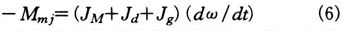 式中 Mmj为拖动系统的静阻转矩(牛·米);JM为折合至电动机轴上的生产机械惯性矩(千克·平方米);Jd为拖动电动机的惯性矩(千克·平方米);Jg为折合至电动机轴上的附加飞轮惯性矩(千克·平方米);ω为电动机的角速度(1/秒);t为惯性运动时间(秒)。