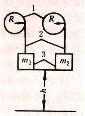 在生产机械的驱动轮(半径为R,米)上缠绕绳索,绳索的自由端系以重物,为了确定生产机械的惯性矩,也要作两次加速试验,试验时所系重物质量分别为m1及m2,以产生大于阻转矩的恒定转矩(图5)。