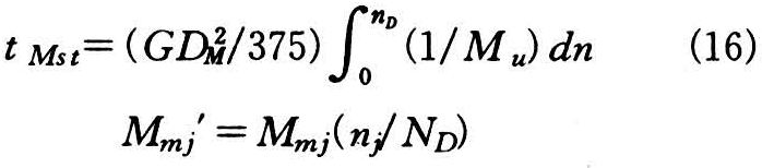 式中 Mu=MD-Mmj′为剩余转矩,即使电动机产生加速的转矩(牛·米);Mmj′为生产机械折合到电动机轴上的转矩(牛·米);MD为电动机轴所供转矩(牛·米);ND为电动机在额定负载下的转速(转/分);nj为生产机械的转速(转/分)。
