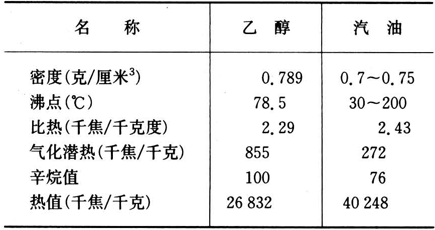 表2 酒精与汽油的物性对比