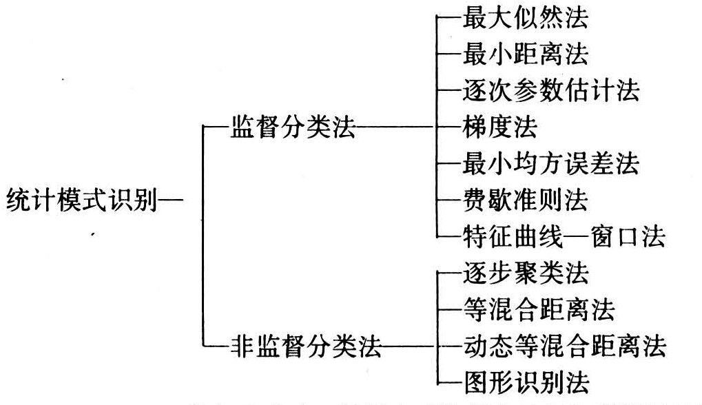 数字图像分类主要应用于自然资源调查、医疗诊断等领域。如分类处理陆地卫星(Landsat)的数字图像可把处理范围内的地球表面划分为河流、耕地、林地等地类,确定这些地类的位置,计算它们的面积;分类处理不同时间内获得的数字图像可划分不同农作物的种植范围、区分出不同农作物的生长发育状况和受害程度,等等。根据处理数字图像的方式,形成统计模式识别和句法模式识别两大数字图像分类方法。前者以图像的光谱信息为主要的分析对象,以数学上的决策理论为基础,从大量的统计分析中找出规律性认识,提取反映图像本质特点的特征以供识别;后者起始于20世纪60年代后期,它以图像的结构信息为主要的分析对象,研究点、直线、斜线、弧线及环等构成图像的规则,用来识别图像,但尚未应用于生产实践。根据处理光谱信息的方式,统计模式识别可分为以下几种方法: