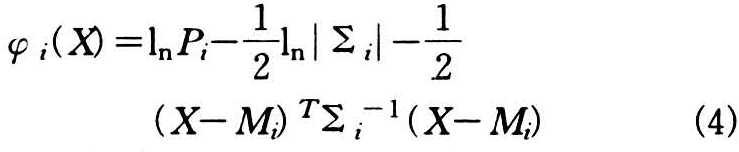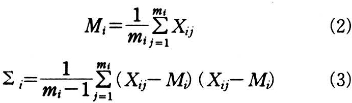 按下式统计出各训练场地内所有已知像元的光谱均值方阵Mi及均方差阵Σi: