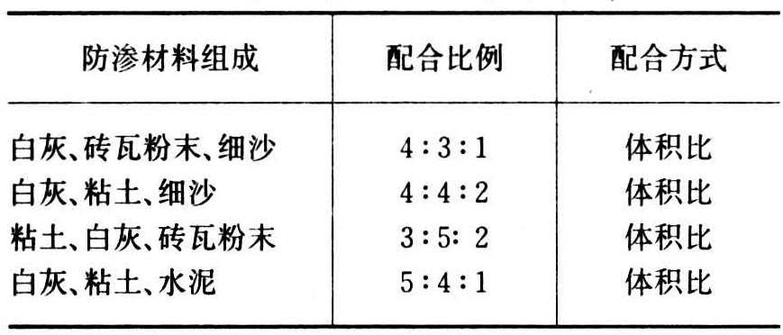 防渗材料配合比例参考表