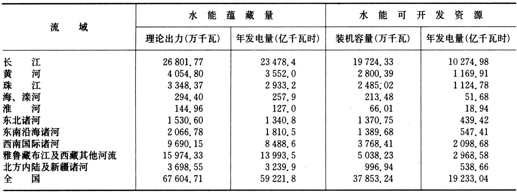 表1 中国水能资源一览表