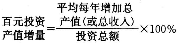 单位投资产值增量,一般以百元投资,平均每年增长的产品产值(或总收入)计算。