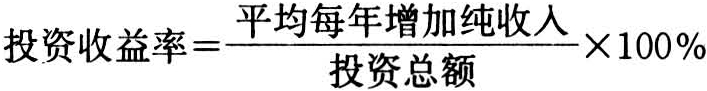 投资收益率,即投资效果系数。一般以平均每年增加纯收入(或盈利)与投资总数之比表示。