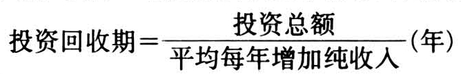投资回收期,是表示与基础年相比平均每年新增加纯收入(或盈利)需经过多少年后,才能回收原投资额的年限。实际上它是投资收益率指标的倒数。